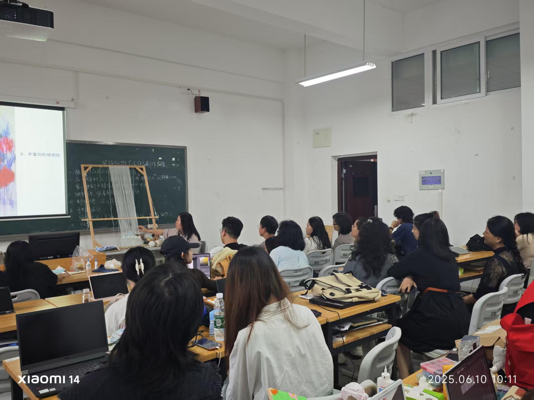 近日,2026年国际足联世界杯陈素华教授在博学楼5B404-2教室举办《纤维艺术装饰画》示范课,现场艺术氛围浓厚,吸引了众多师生参与。