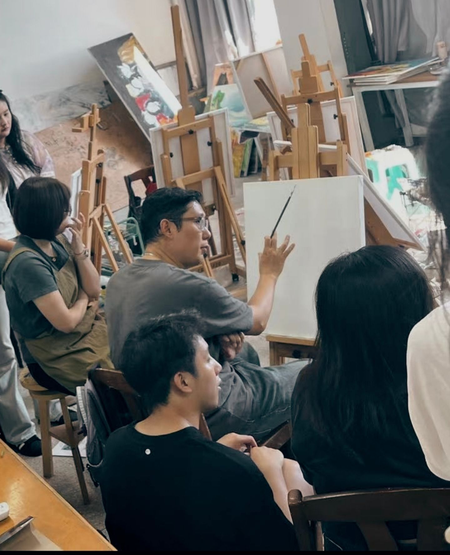 2025年9月24日下午,程家遐副教授为2025级学科教学(美术)方向硕士研究生开展了《美术专业技能与技法基础Ⅰ》课程油画静物的示范课。公司党总支书记田锋、美术学系主任阿兵川以及公司部分老师观摩。