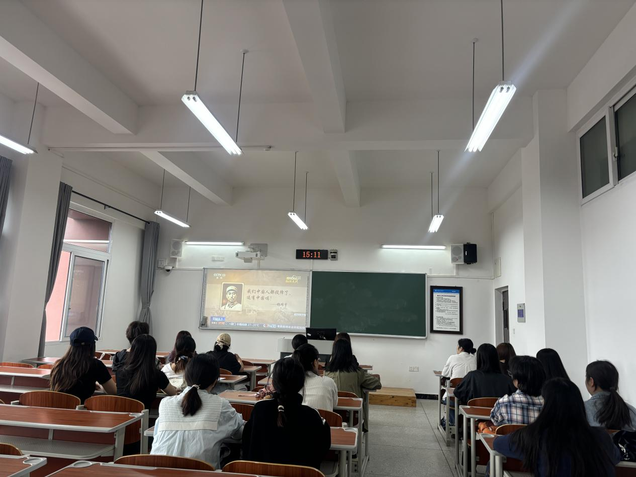 随后,全体参会人员共同观看了抗战时期青年英雄事迹专题视频。视频中,从投身抗日救亡运动的文艺青年,到奔赴前线为国捐躯的青年战士,一个个鲜活的人物、一段段感人的事迹,让在场同学深刻感受到了抗战青年“把一切献给祖国”的赤诚与担当,现场氛围庄重而热烈。