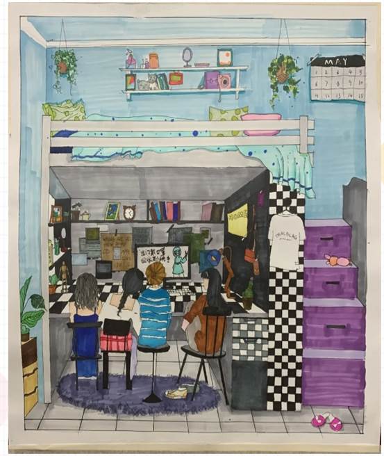 宿舍原创作品大赛的成功举办,不仅增强了宿舍的凝聚力和向心力,而且维持了和谐融洽的宿舍关系,相信每个宿舍成员会向着健康、卫生、团结、互助的宿舍环境而奋进。以下为获奖作品展示: