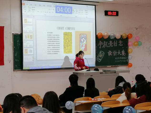 此次比赛分为A、B两组,上午为A组初赛,在初赛中评委和观众们看到了许多优秀的手机壳设计,参赛人员通过制作PPT和视频,再由参赛代表上台讲解设计理念、制作过程、制作材料及成果展示,最后由评委打分择优进入决赛。