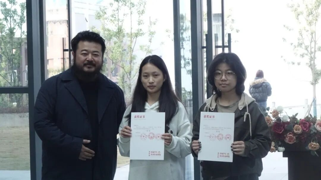 随后,王明国副经理宣读获奖名单,田锋书记、张宏伟经理为获得二等奖和三等奖的同学颁奖,陈腾龙先生为获得一等奖的同学颁奖。展览展出的作品有中国画、油画、版画、雕塑、数字艺术等类型,题材丰富、形式多样,展现美院学子扎实的功底与活跃的思维。