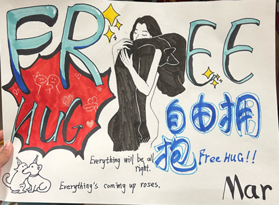 另一个重要环节是由参与人员张开怀抱拥抱自己的朋友。拥抱是一种表达思想、交流情感的方式,拥抱能使人与人之间的距离更为贴近,感受他人的温暖。敞开心扉的自由拥抱不仅能释放压力,也更让大家明白关爱他人的重要性。