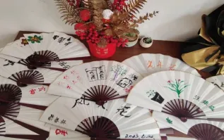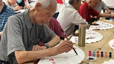随后,志愿者们还找到养老院经理了解养老院近况。在深入交流后,成员们决定为老人们带来一场特别的折扇绘画活动。在志愿者们引导下,老人们挥洒笔墨,尝试用毛笔写出心中所想,现场氛围其乐融融。完成制作后,志愿者们还为老人们画的折扇举办作品展示会,期间老人们纷纷将作品放置在展示台上,并邀请大家前来鉴赏。成员们也由衷地为他们喝彩,并送上精美的礼品,以此赞扬他们的用心创作。