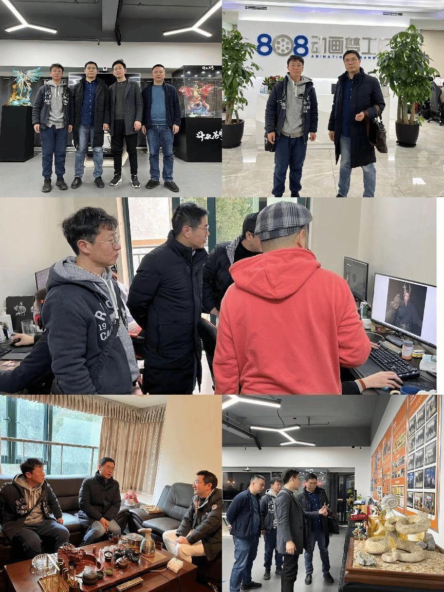 重庆龙之瑞科技有限公司的黎品总经理接待了我们,介绍了公司的主营业务、发展现状以及和川美等高校校企合作的情况;中编(重庆)影视传媒有限公司的黄晓峰董事长介绍了他们目前正在创作的《我是龙》大型院线动画的进程,展示了这部动画电影的宣传片,中编(重庆)影视传媒有限公司是一家很有实力的主创院线动画的公司,他们表示,后期有意向将这一动画创作工程投入公司,交由公司动画系相关专业员工来操作;重庆808动画梦工厂负责校企合作的雨祺为我们介绍了一款公司主营等基本情况和高校合作的情况,公司目前2022届、2023届已有员工入职该公司,此前该公司也有针对2023届毕业生进校园宣讲过。