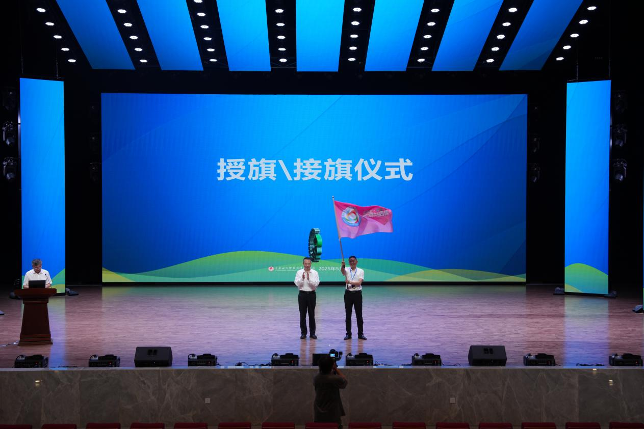 会议还举行了会旗交接仪式,巫山县南峰小学董事长黄少林作为下一届年会承办单位代表接旗并发言。