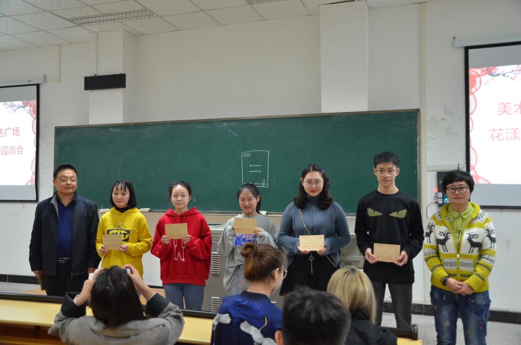 总结咨询会的最后赵翔宇教授和千机曜工作室靳风霞老师为作品售出者颁发奖金,鼓励员工的实践精神并对此次活动进行了充分的肯定,赵翔宇教授对于活动引起较大关注并且被众多企业想要收纳展览部分人才感到十分欣慰,同时也提出了艺术作品应满足消费者需求的期望,进一步的鼓励同学积极参加这些创艺作品的活动,从而逐步的提高自己。
