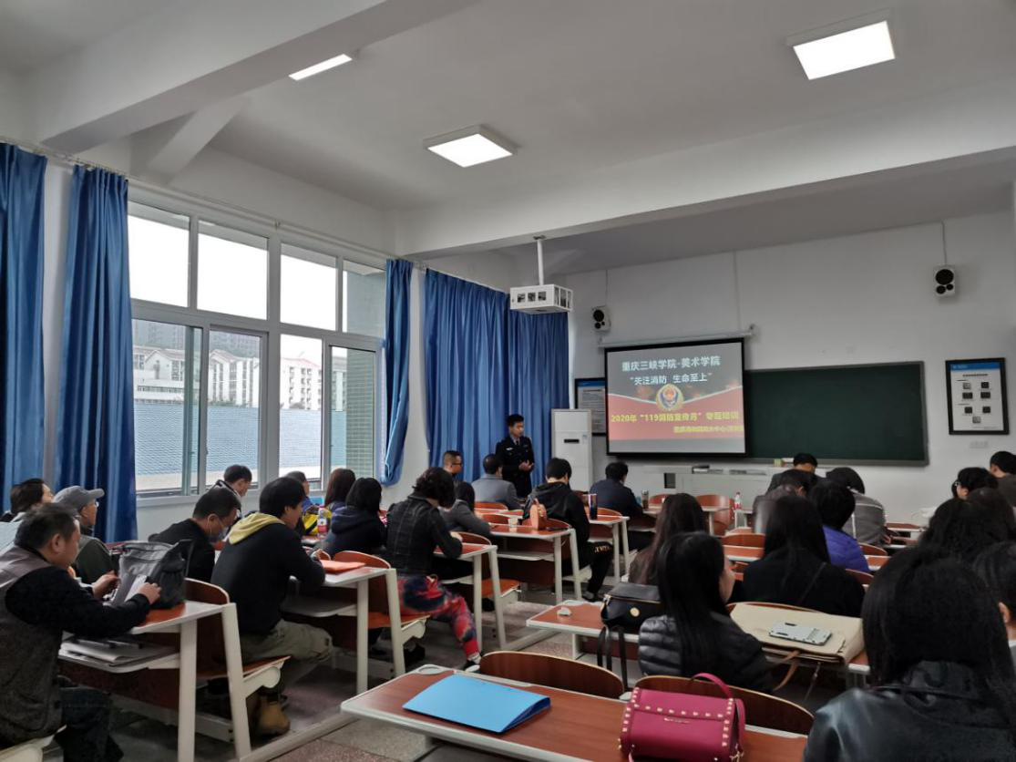 来自重庆市利民防火中心的汪教官,利用多个具体的、不同类型的火灾案例,向全院教职工详细地讲述和普及了生活中常见的火灾隐患、灭火器的使用范围和方法、遭遇火灾时逃生方法等内容,介绍了气溶胶、灭火毯等新型消防设备的使用方法和使用范围,强调了消防设备在生活中的重要性,只有人防与物防相结合,才是最大保障,才是平安。
